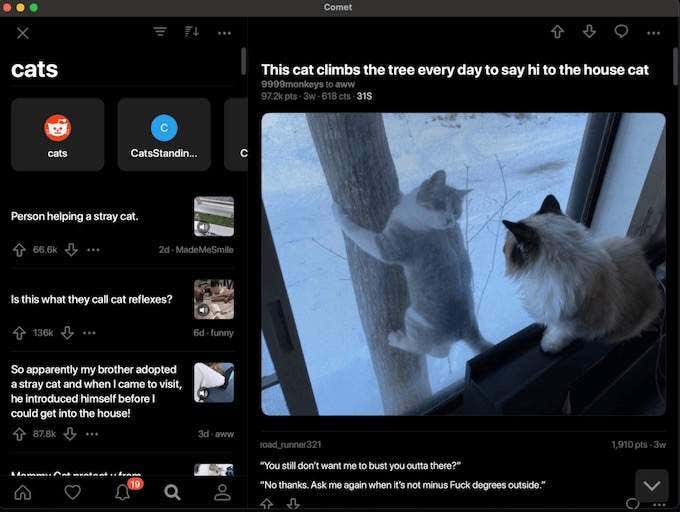 Comet is a pretty new app for browsing Reddit but it looks promising. Comet for Reddit comes with a beautiful modern design and an intuitive interface. The app has all of the standard Reddit client features.These include full markdown support, the ability to view all types of media including GIFs, multiple accounts support, and more. Many sections of the app are customizable, so you can change the app to suit your needs better.