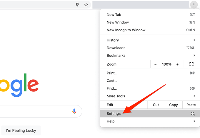 - Select the Chrome menu (three dots) at the top-right corner and choose Settings.
