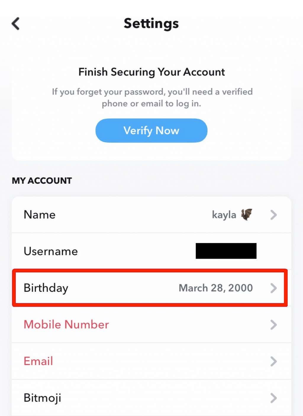 - Under My Account, tap on Birthday.
