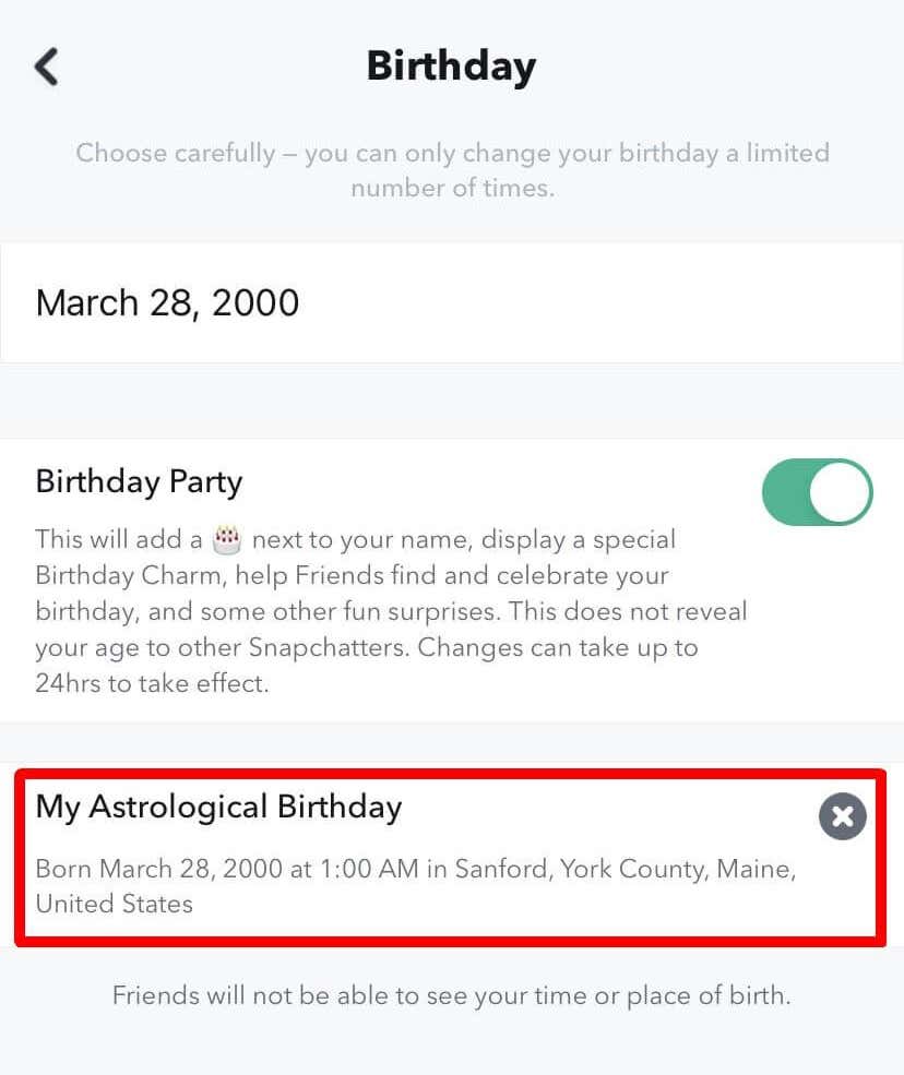 If you haven’t set your birthday in Snapchat yet, you can do this in the Birthday section itself and enter in your date of birth. In this section, you can also enable Birthday Party in order to see sign compatibilities with Snapchat friends and share your own Astrological Profile.