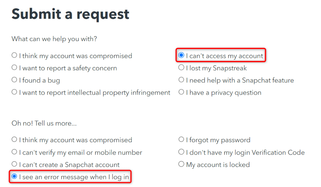 If the above methods haven’t resolved your issue, your last resort is to contact Snapchat’s support team. The issue may not be on your end but on Snapchat’s end, which the company’s support team can help you with.
