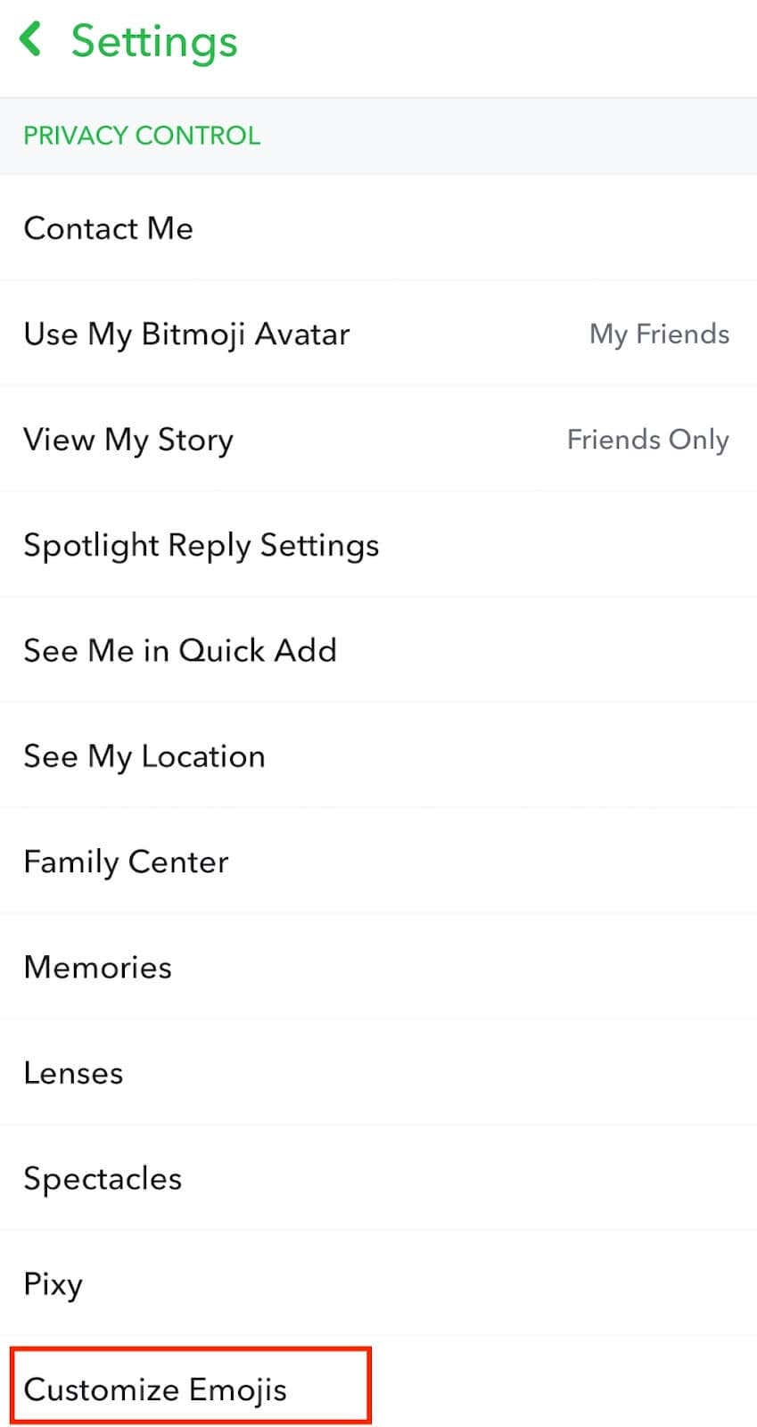 - On Android, scroll down and select Customize Emojis under Privacy Control.