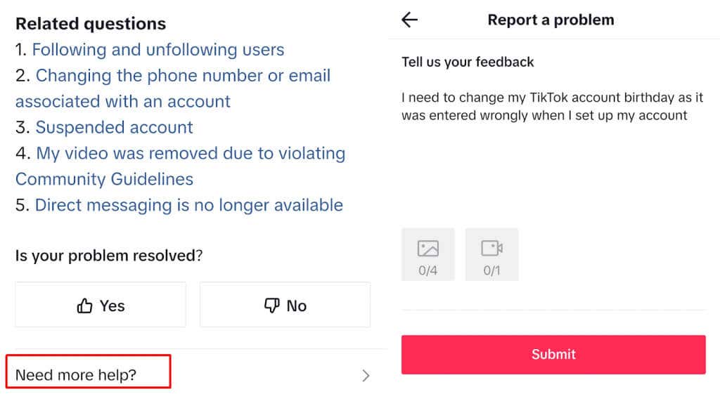It’s easy to reach out to TikTok customer support to change your age or date of birth, and here’s how to do that: