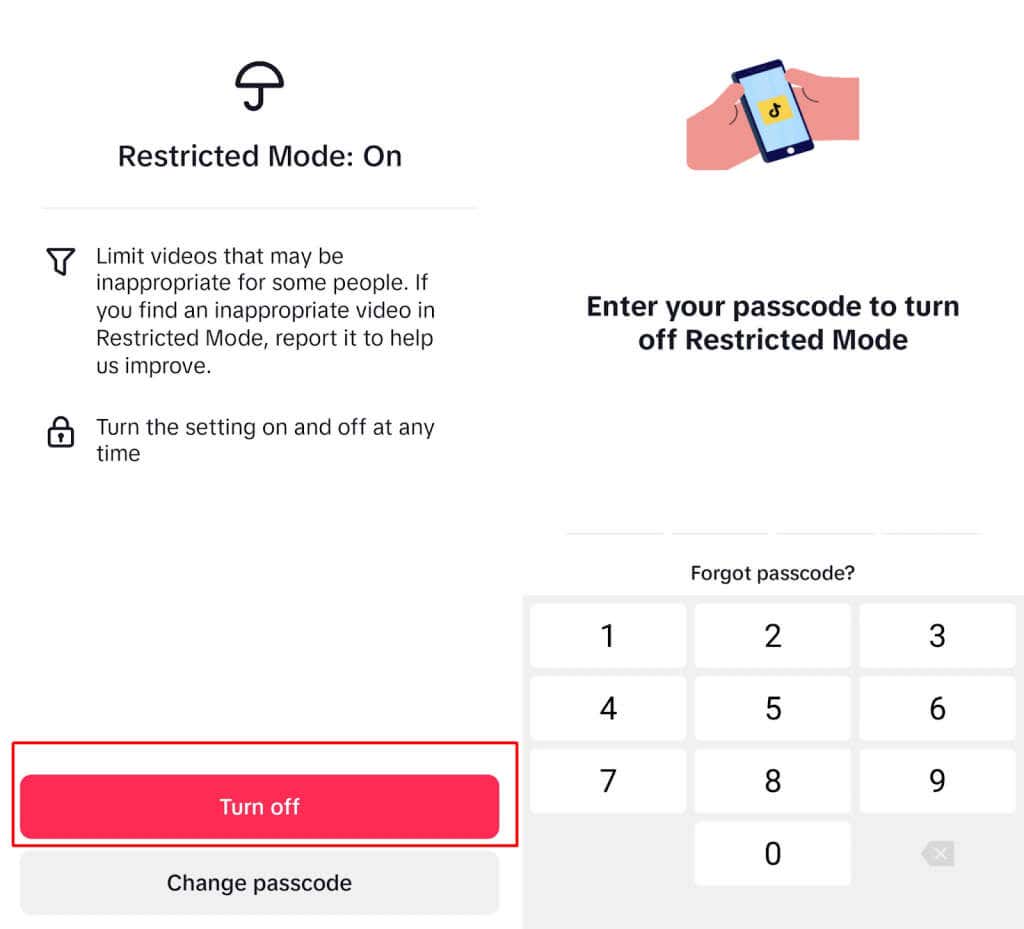 - To turn off Restricted Mode, follow steps 1 through 5, then tap Turn Off and enter your passcode, and tap Next.