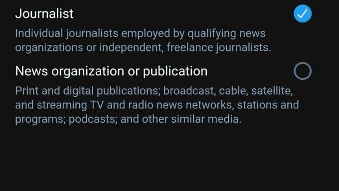 Each one of these categories has its own rules to reflect what notability means in each industry. For example, entertainers may have minimum follower count requirements, but journalists may have different criteria.