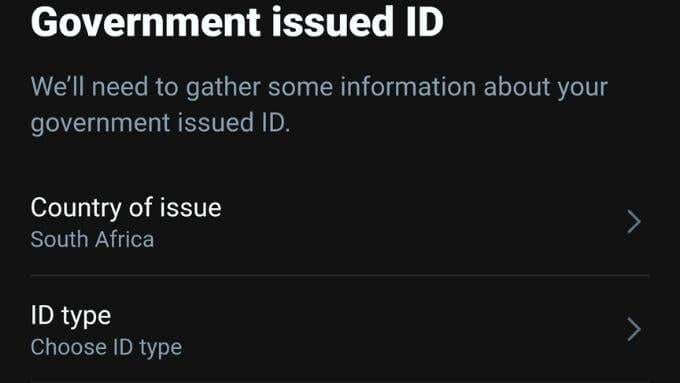 - If necessary, choose your country and the type of government ID.