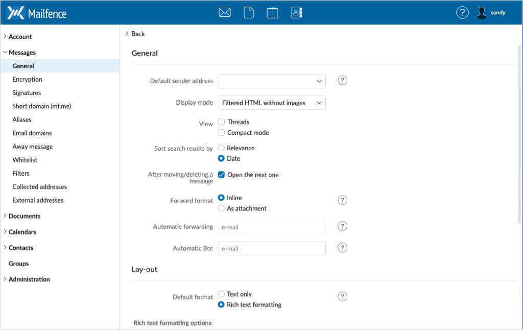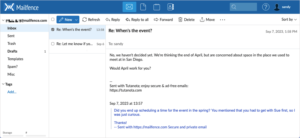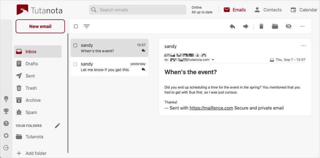 If one thing you like about Gmail is its connection to Google Calendar, Contacts, and Drive, then take Mailfence for a spin. Along with email, you can create events and manage your schedule, add or import your contacts, and upload and store documents.