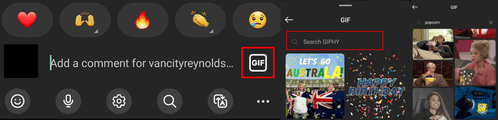 There might be times you want to reply to an existing comment on Instagram using a GIF. Sadly, this isn’t possible — you can only create a new comment with your GIF of choice.