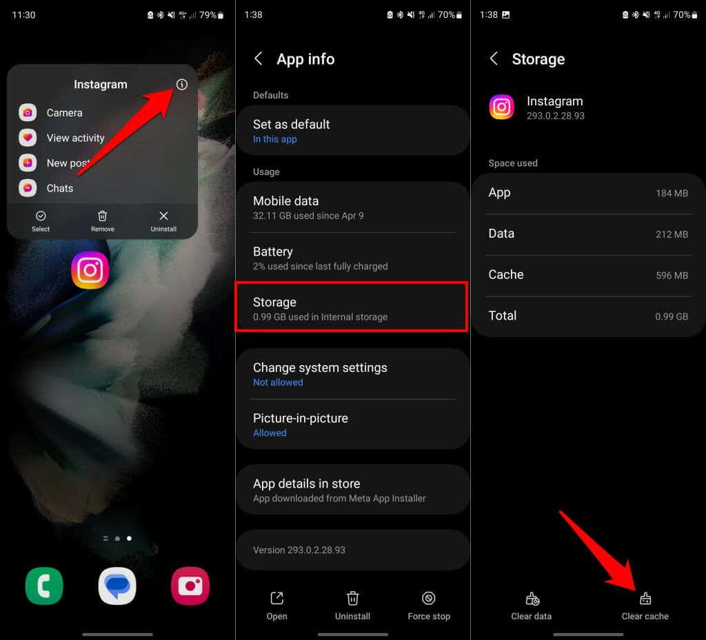 - Return to Instagram’s storage info page (see steps #1 and #2) and tap Clear data.