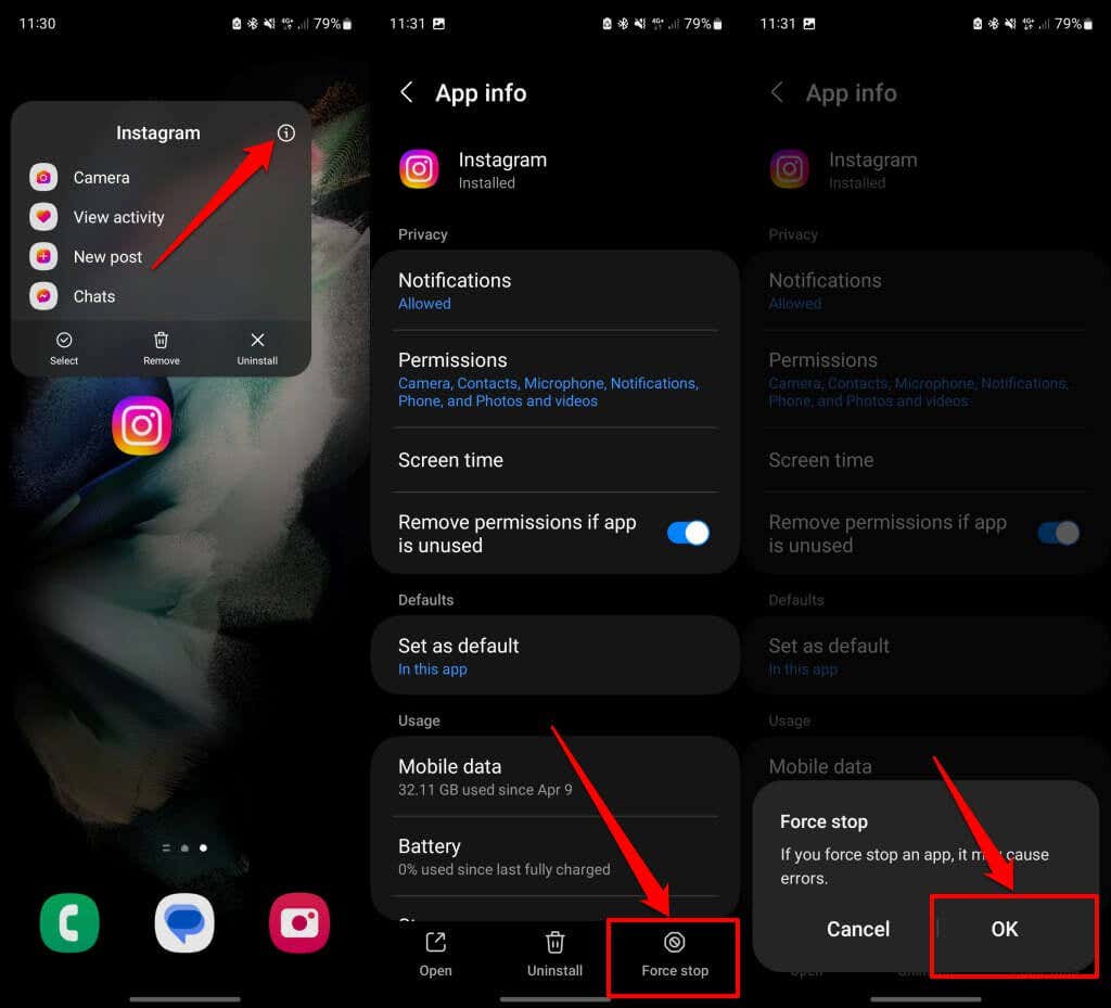 Restart Instagram and check if the app opens website links. Clear Instagram’s app data (see step #4) if the issue persists.