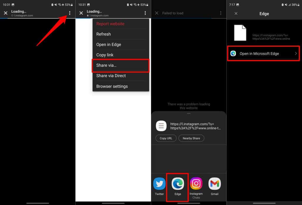 Close the browser and revisit the web link. Close and reopen Instagram if the browser still doesn’t load the website.