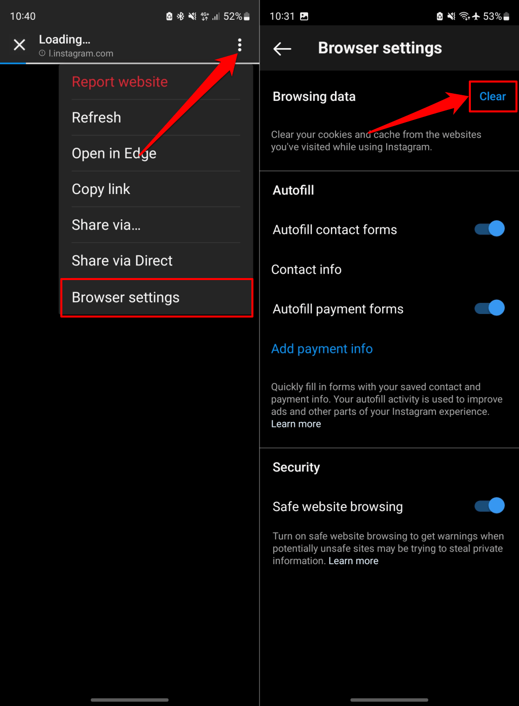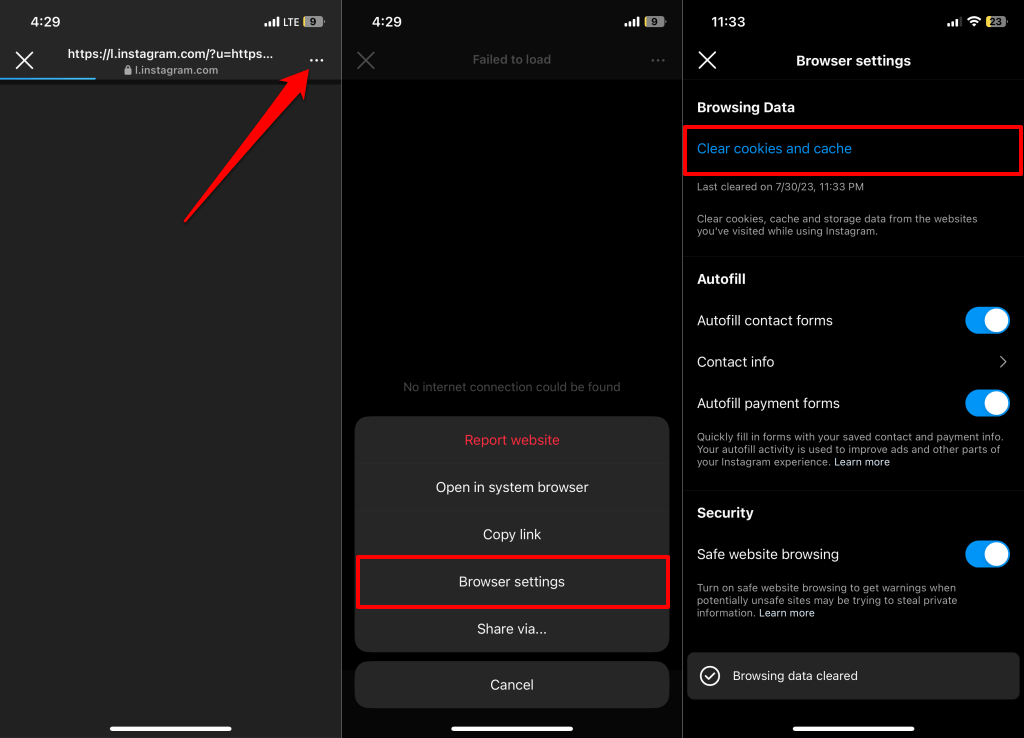 Instagram saves data from websites or links you visit in the in-app browser. Instagram might fail to open links if the browser’s data over-accumulates or gets corrupted. Clear Instagram’s browser data might get the app opening website links again.