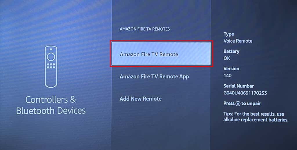 - Navigate to your Amazon Fire TV Remote. You’ll find an option to update your Fire TV Remote if there’s an update available for the remote control.