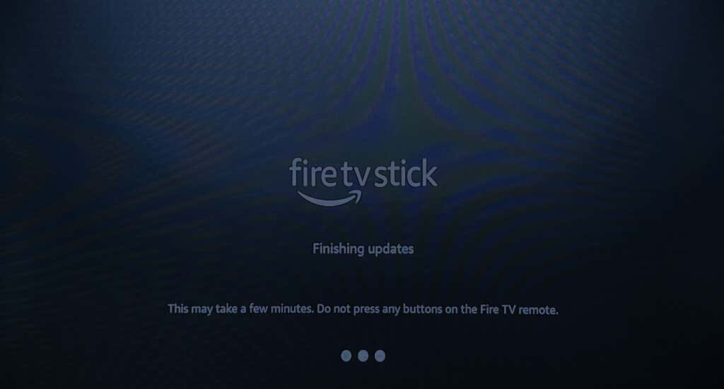The installation could take up to 30 minutes, depending on your Fire TV device and internet connection speed. Don’t press any button on your Fire TV remote while the update installs.