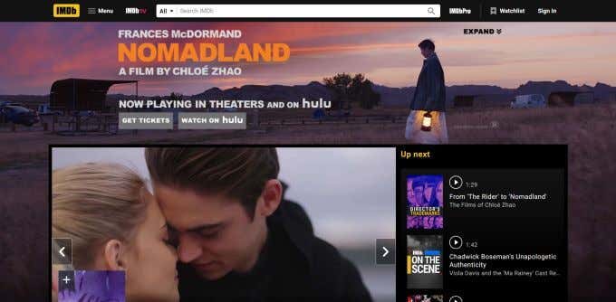 IMDb, or Internet Movie Database, is one of the most popular sites out there for finding movies and to look at ratings and reviews. IMDb is also a great site for checking out the newest movie releases, and you can create an account to make your own lists, rate movies, and write reviews.