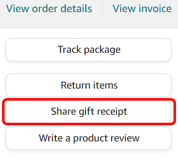 Note: You can’t create a gift receipt outside of the return window for the product. If you don’t see an option to share a gift receipt, then neither you nor the gift recipient can return the item.