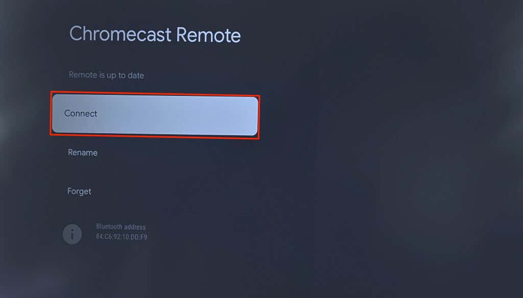 - Updating the remote unpairs it from your Chromecast. Select Connect after the update to re-pair the remote.