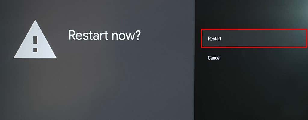 - Select Restart again on the confirmation pop-up to reboot your Chromecast device.