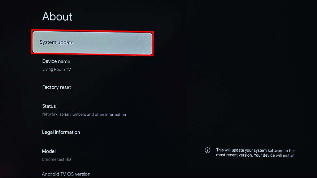 - Select System update and wait while your Chromecast scans for available updates.