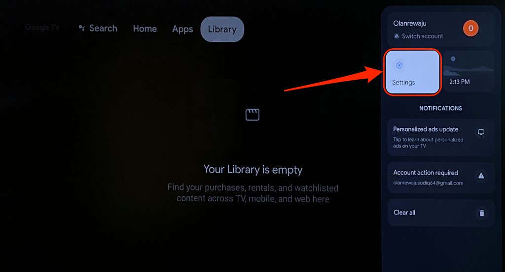 Your Chromecast remote won’t work if its batteries are dead or inserted incorrectly. Check the battery level of your Voice Remote in the settings menu.