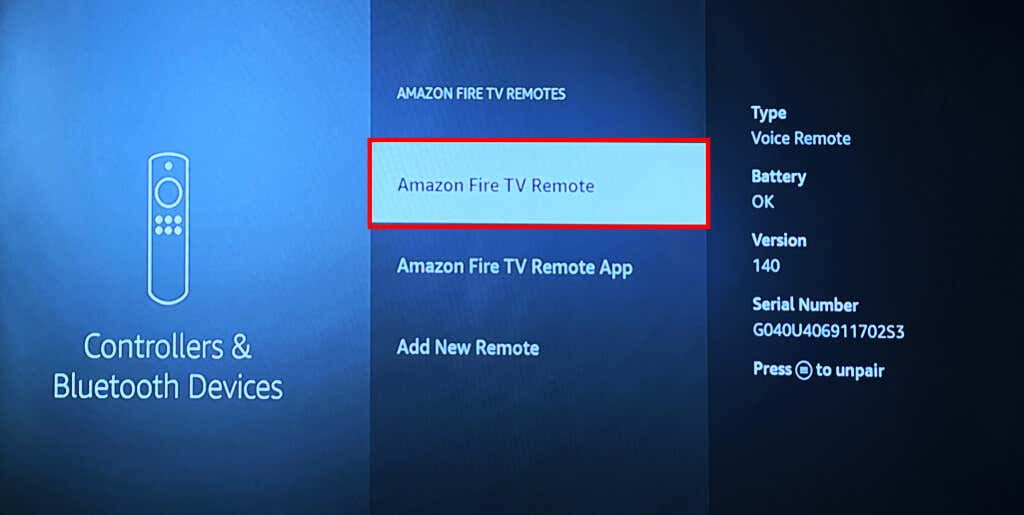 The remote should now appear on the list of controllers. Reboot your Fire TV if the remote still doesn’t work.
