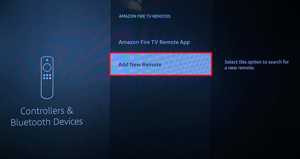 - Select Add New Remote to re-pair the remote to your Fire TV.