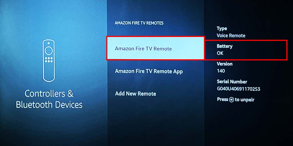 Change the remote’s batteries if your Fire TV says they’re “Offline.”