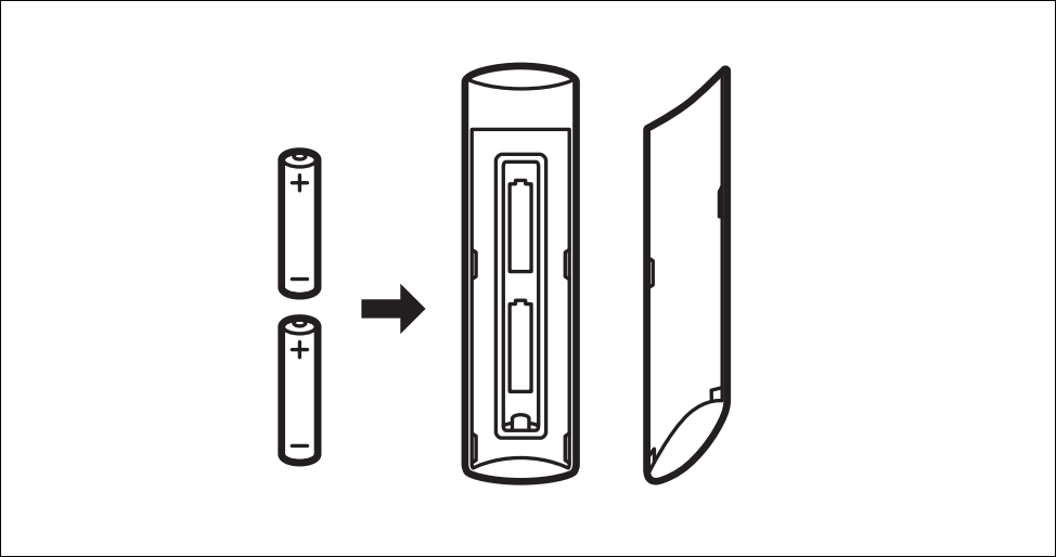 - Open the back cover and remove both batteries from the remote.