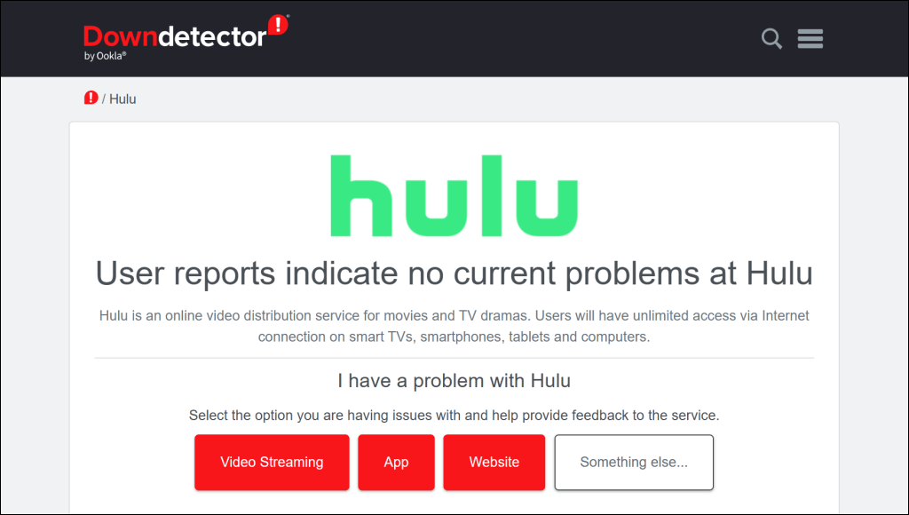 If these tools report a problem with the streaming service, contact Hulu Support or wait until Hulu resolves the server issues.