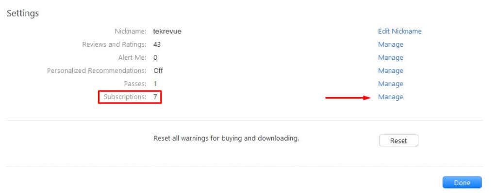 3. Scroll down until you see the Settings section, find Subscriptions, and select Manage next to it.