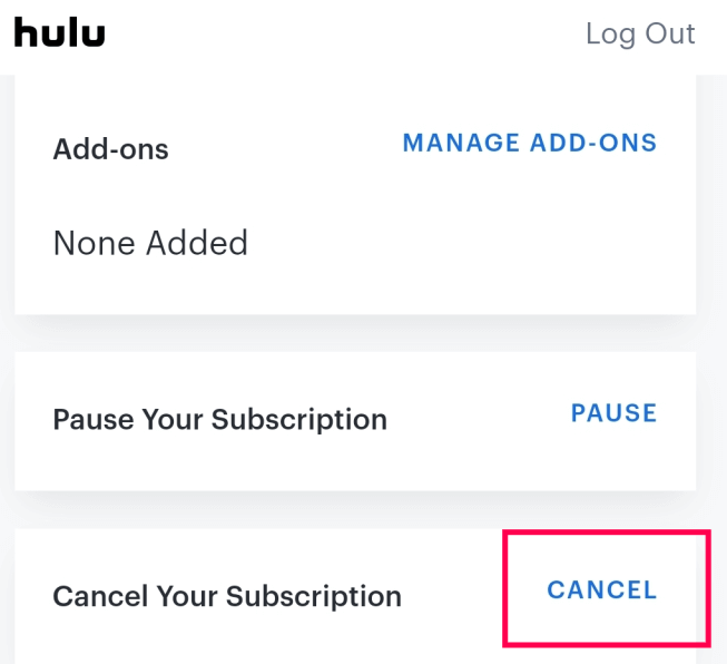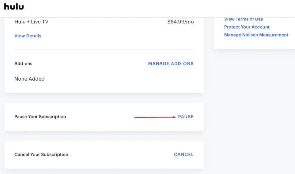 Hulu offers a less dramatic subscription option. After all, they want to keep you as a customer. So instead of canceling your subscription, you can always pause or change your plan.