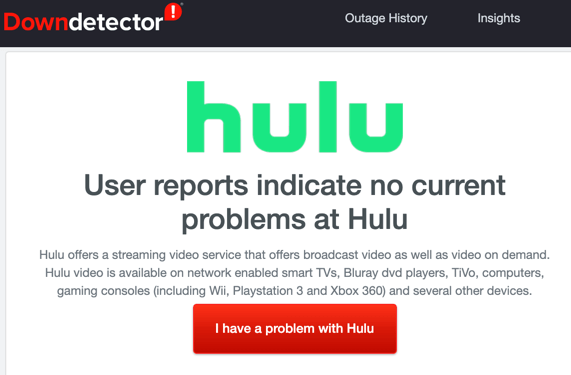 Use online-based site monitoring tools like DownDetector to check if Hulu’s servers are working correctly or experiencing an outage before troubleshooting other potential causes of the error.
