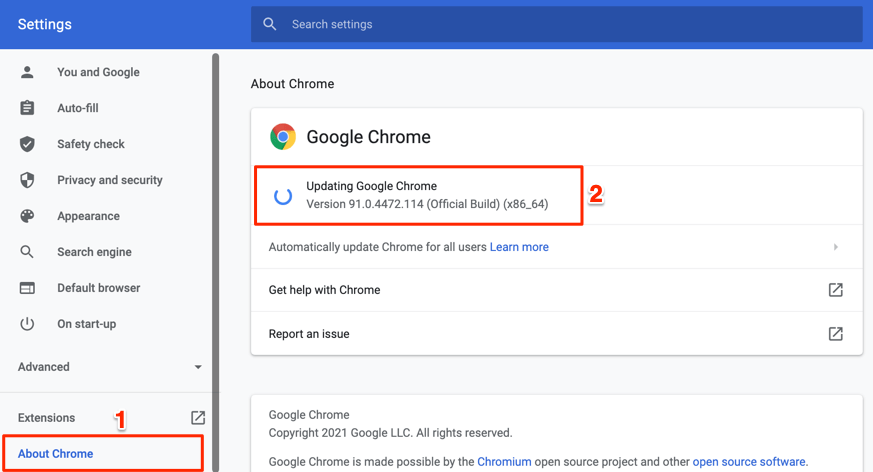 Although major web browsers update themselves automatically, open your browser’s settings menu to check for updates.
