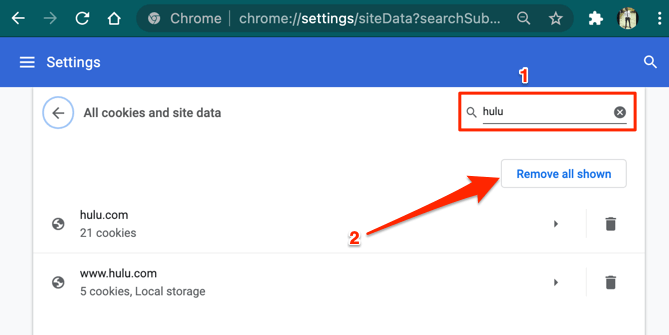 If you’re still getting the Hulu error code RUNUNK13 in your web browser, clearing Hulu’s cookies and site data could fix the problem. Note that this operation will log you out of your Hulu account on the browser and reset other site preferences.