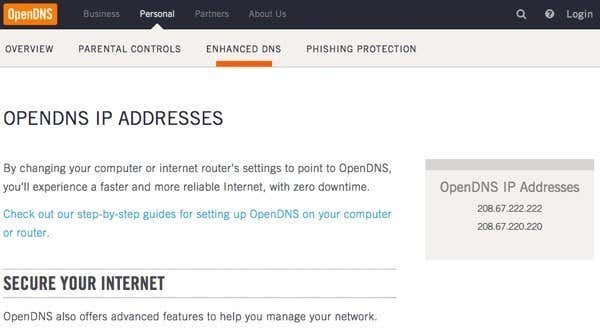 OpenDNS is also the first public DNS that I have mentioned that does automatic blocking and filtering against phishing attacks and identity theft. This is a great option if you have kids and want to prevent them from landing on malware-infested sites or if you have older family members who sometimes click on spam links in emails.