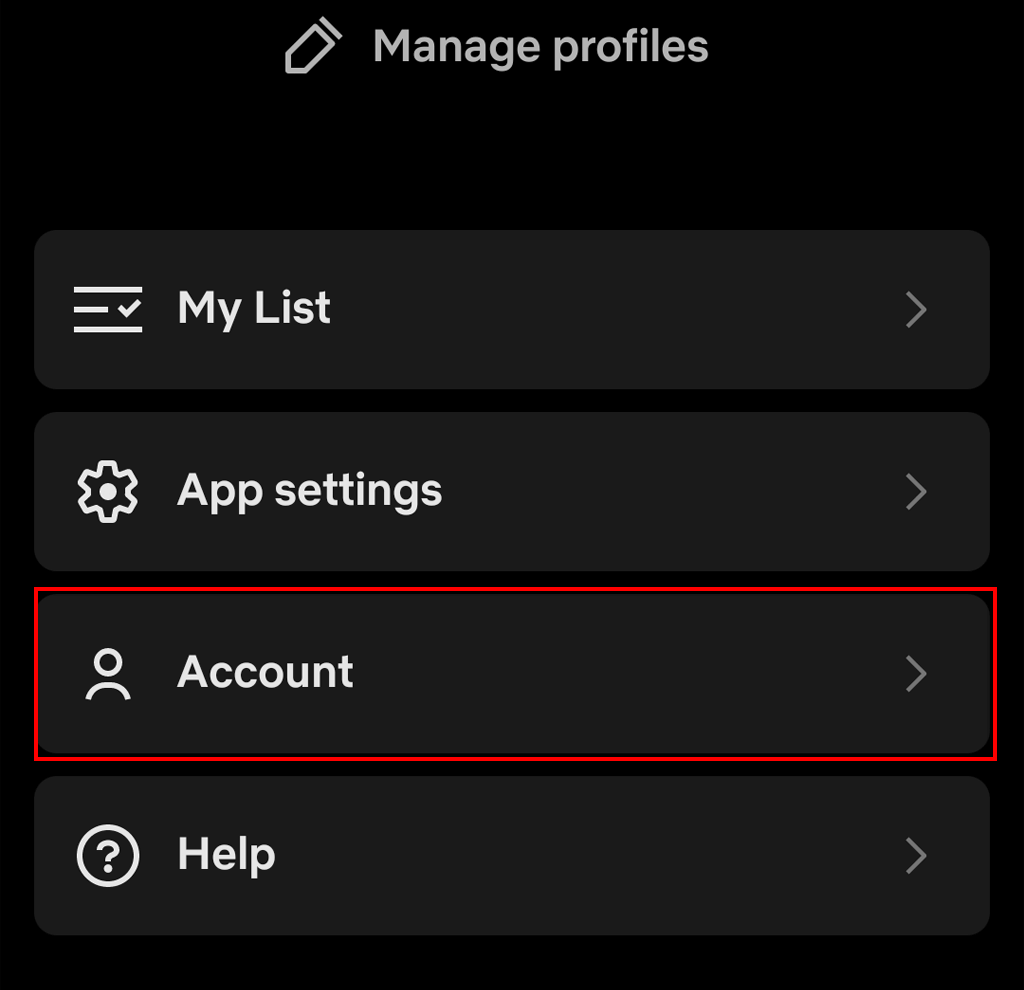 - Tap Account to access your account settings.