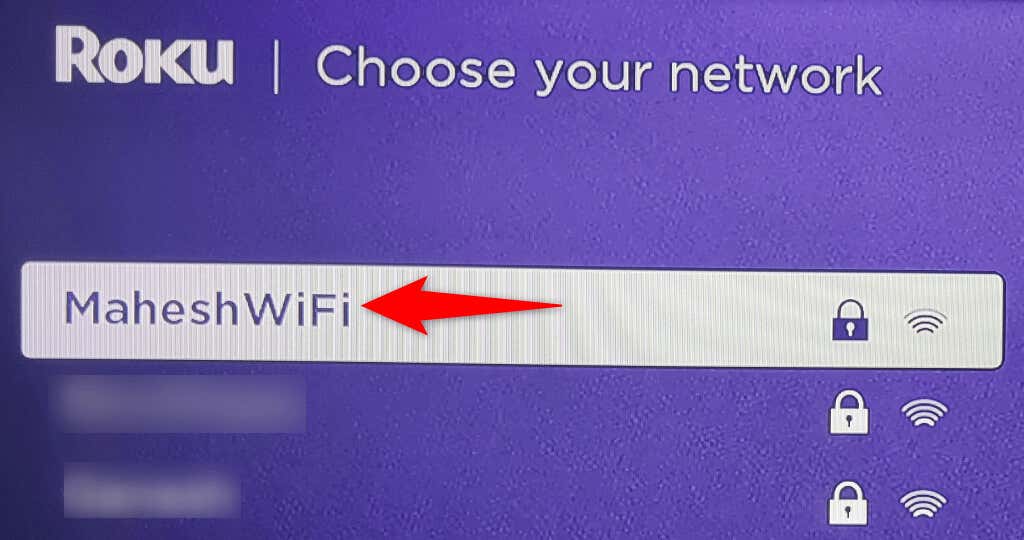 The most common reason your Roku doesn’t connect to your network is that you’ve entered the wrong Wi-Fi password. You must enter the correct network password on the setup screen so your Roku can establish a connection.