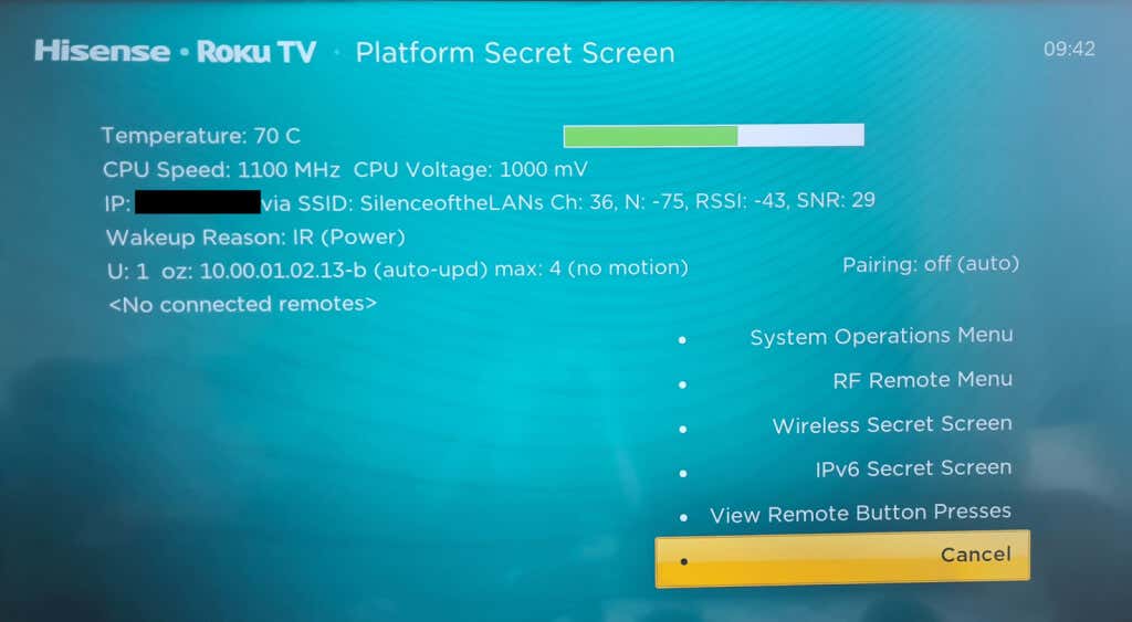 For all the information you need about your Roku device, including IP address, CPU speed, device temperature, pairing status, and more, the Roku Platform Secret Menu is the one to access. From here, you can also access the RF Remote Menu and the System Operations Menu at the touch of a button.