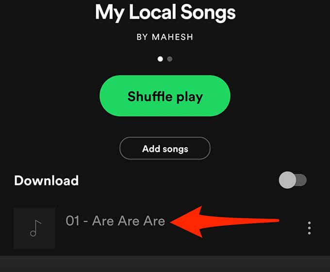 - Select the playlist that has your local files in it. Tap a song to play it.