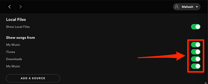 If your local files don’t appear in Spotify, chances are your music folder’s toggle is turned off in the settings menu.