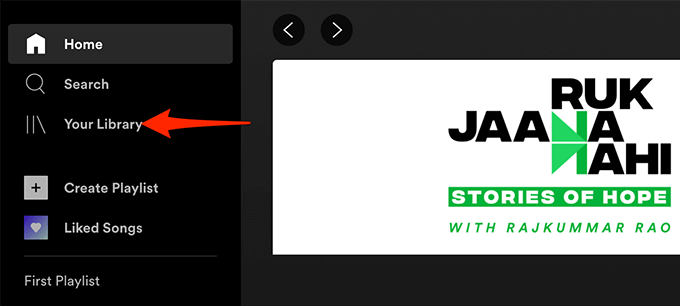- In the Spotify app, from the sidebar on the left, select Your Library.