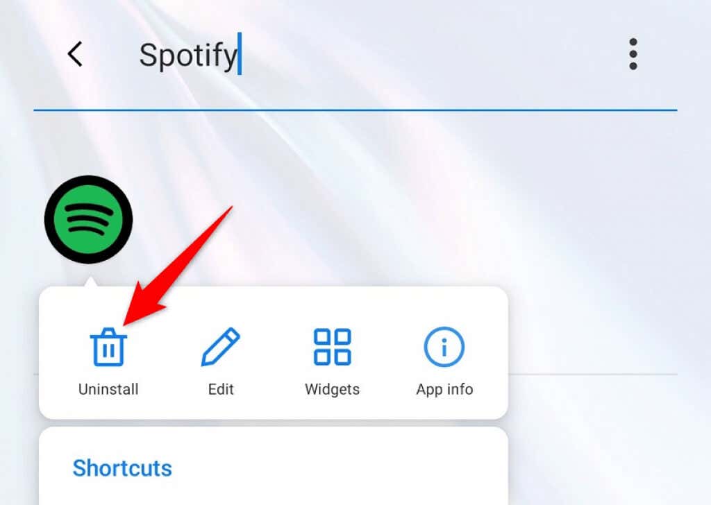 - Tap and hold Spotify in your app drawer and select Uninstall.