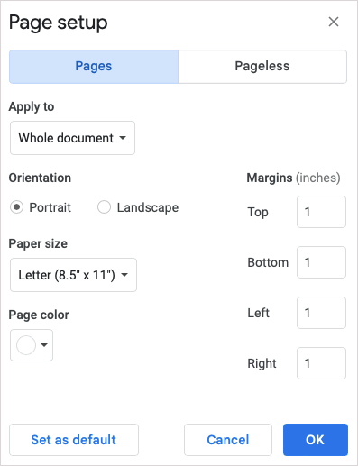 In the Apply To section, you can choose between the entire document or the section where your cursor is located.