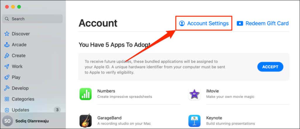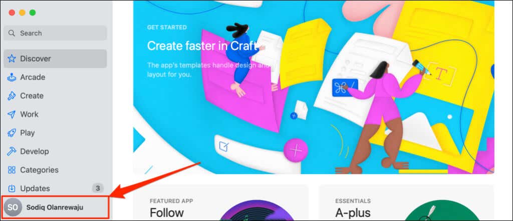 - Open the Apple App Store and select your Apple ID name in the bottom-left corner.