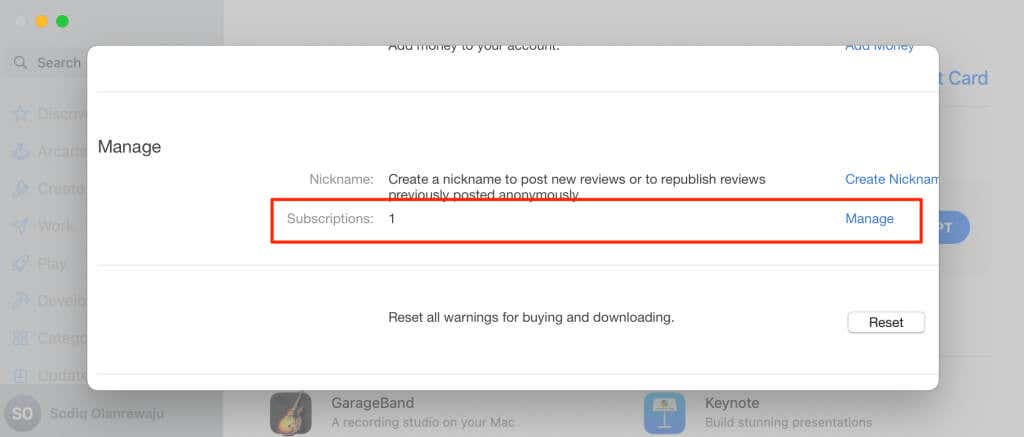 - Scroll down to the “Manage” section and select Manage next to “Subscriptions.”