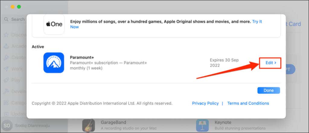 - Select Edit next to Paramount+ and select Cancel subscription on the next page.