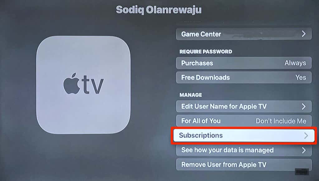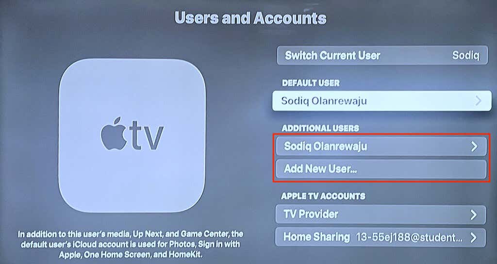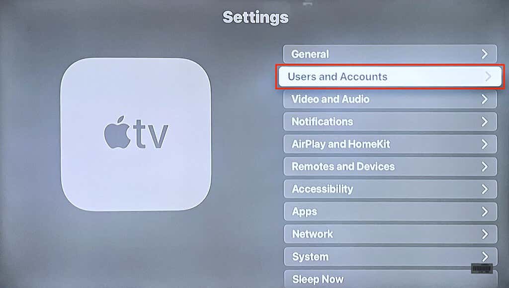 - Open your Apple TV Settings app and select Users & Account.