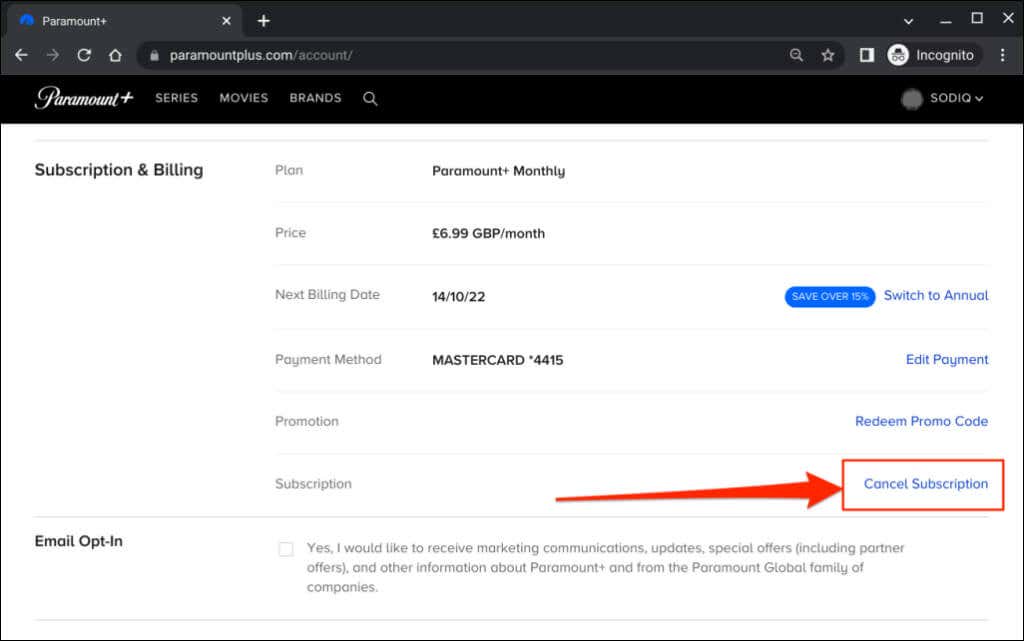 Cancel Paramount Plus Subscription on a Mac