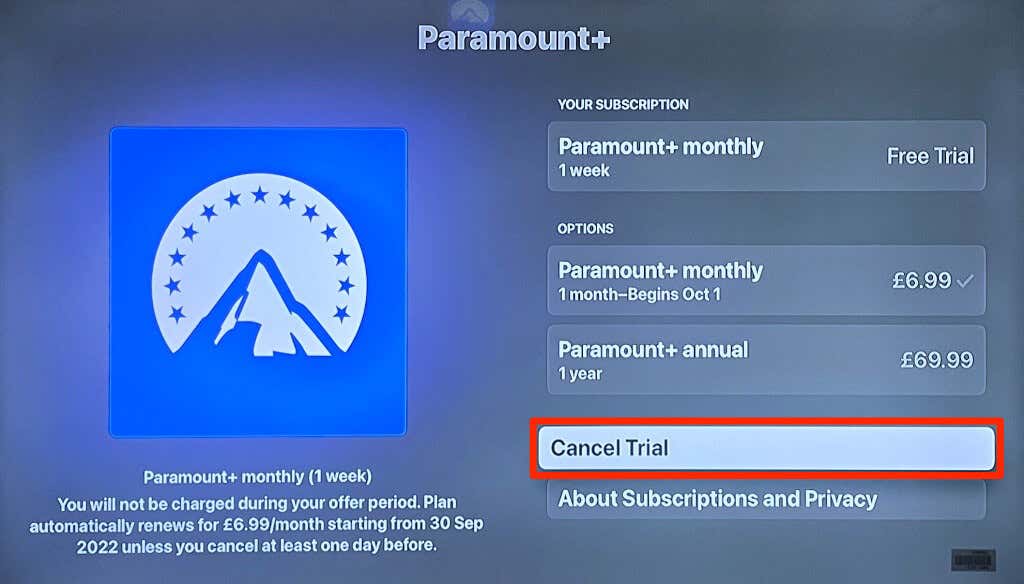 Cancel Paramount+ Subscription on Apple TV