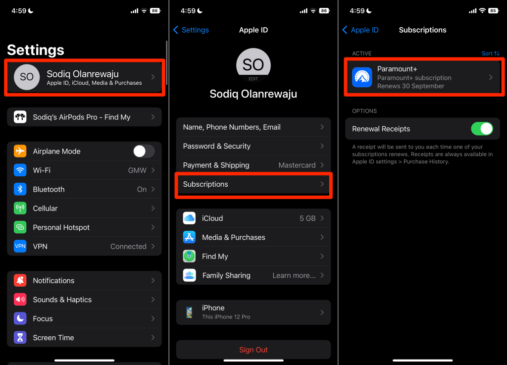 Cancel Paramount Plus Subscription via Apple ID Settings
